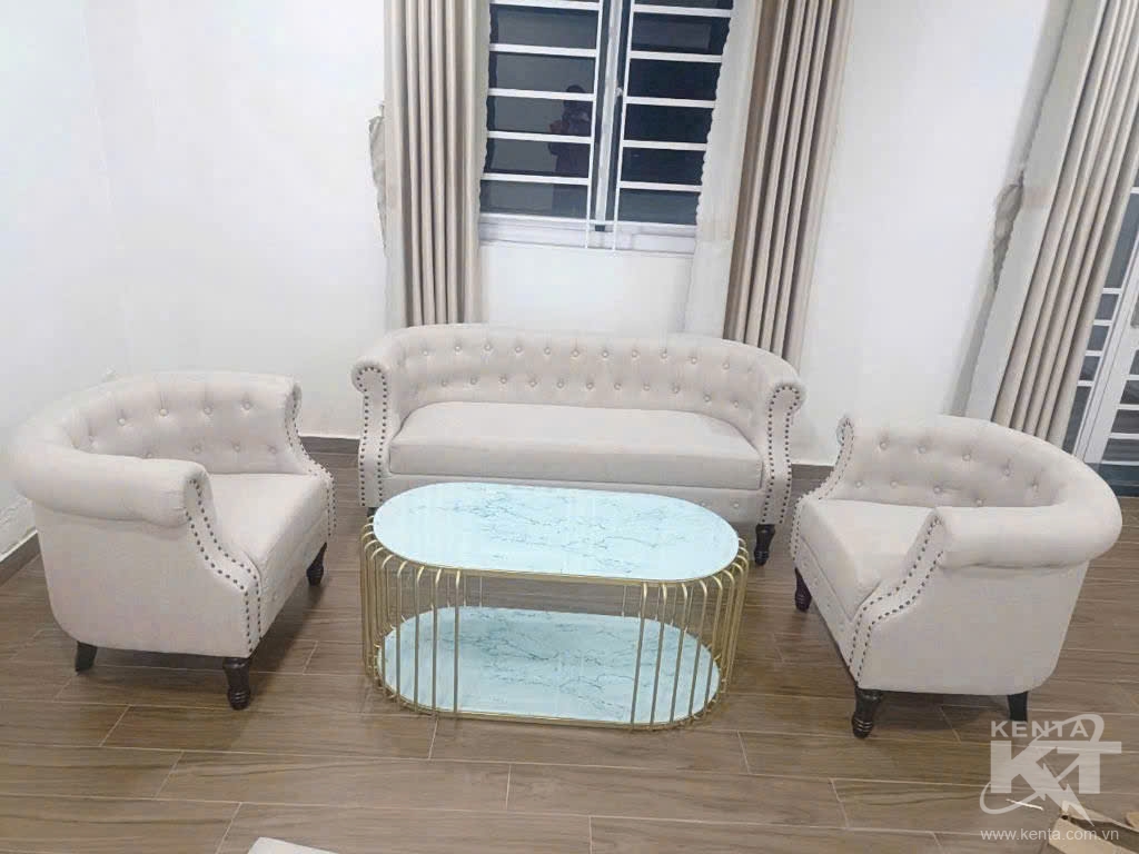 Bộ sofa kem đôn vuông